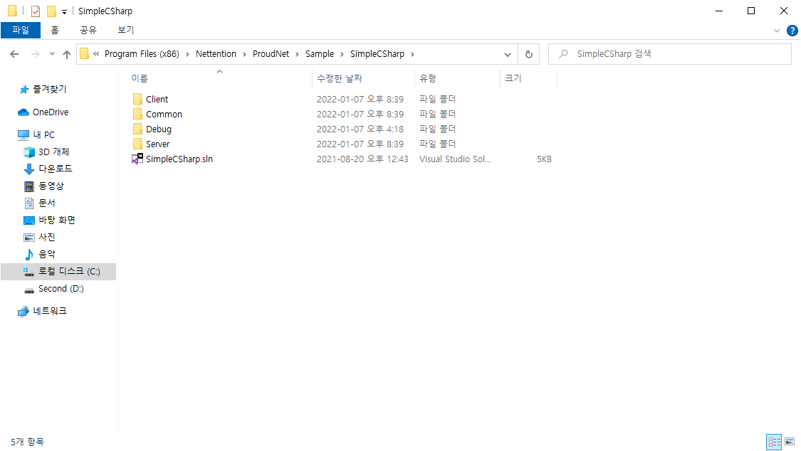 릴리즈된 파일들이 보입니다. 방금 빌드한 SimpleCSharpClient.exe를 실행해줍시다.