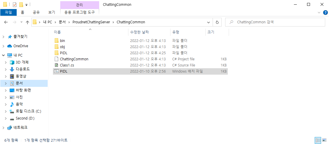 프로젝트 폴더안에 Common 폴더에 들어가 PIDL.bat 파일을 생성해줍니다.