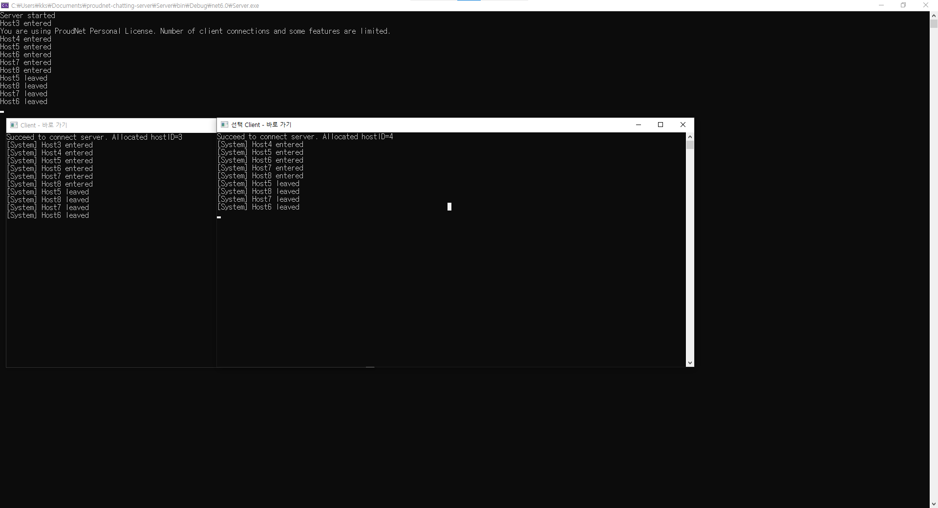 왼쪽 위부터 클라이언트 프로그램을 실행하였습니다.